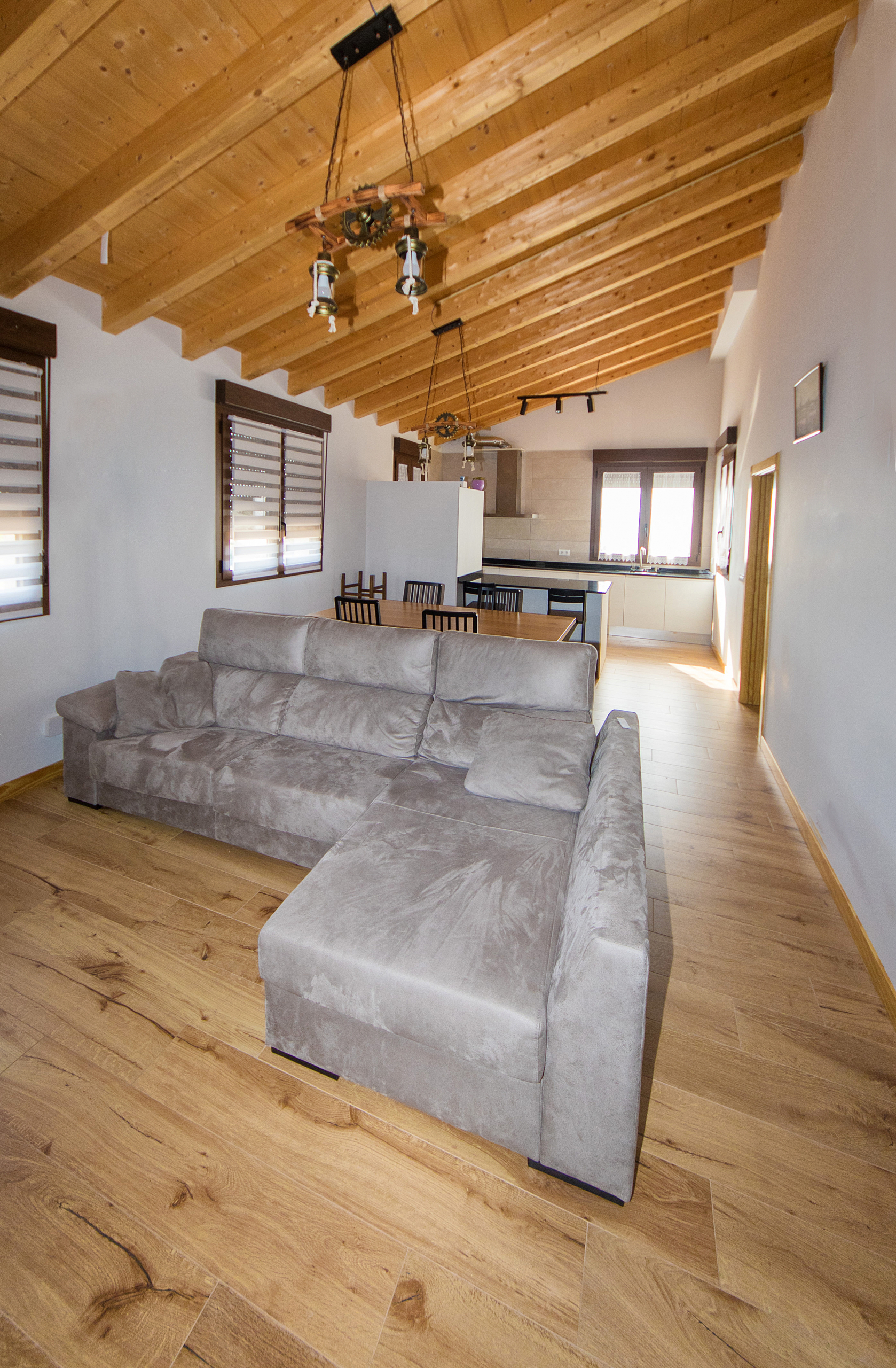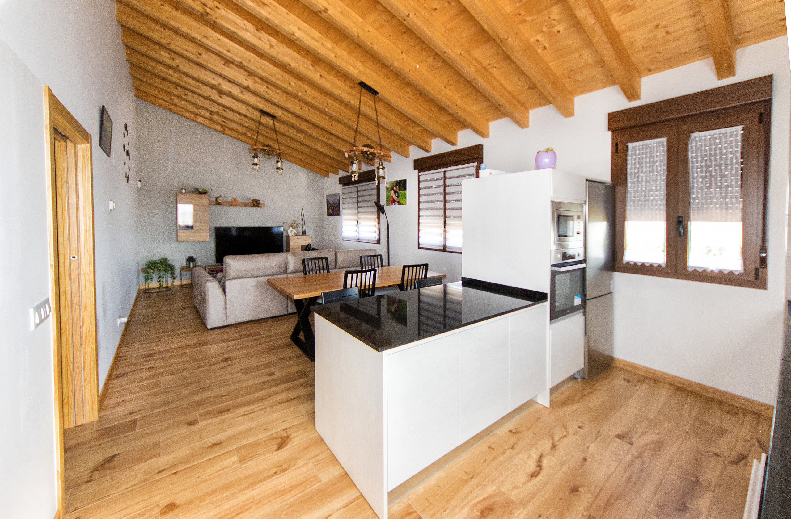 Para maximizar el espacio interior, no se han generado apenas espacios secundarios, destinando la mayor parte del mismo al salón-cocina-comedor, donde además no se descolgará el techo, ampliando el volumen del espacio hasta la cubierta de madera, que quedará vista.